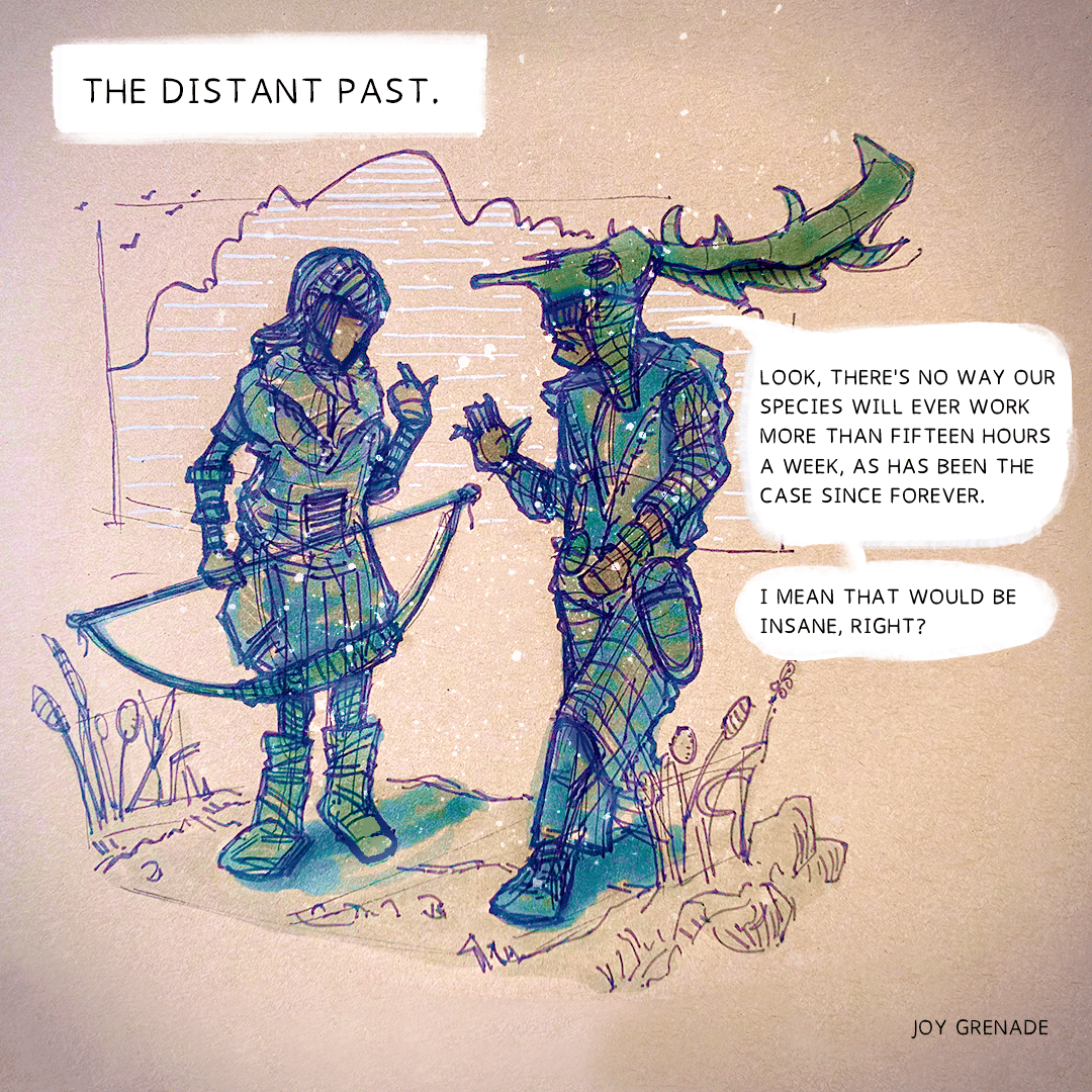 The idea for the above cartoon came from Work, an excellent book by James Suzman. To be clear, Suzman doesn't argue that work is evil--quite the opposite: it's a vital part of who we are as a species.